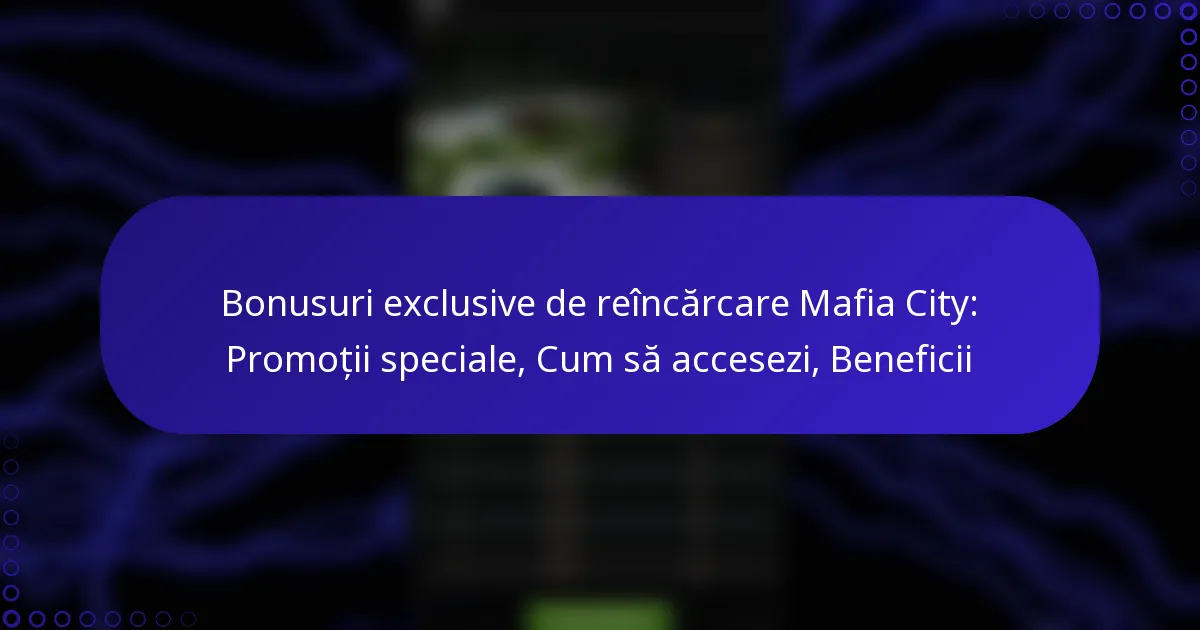 Bonusuri exclusive de reîncărcare Mafia City: Promoții speciale, Cum să accesezi, Beneficii