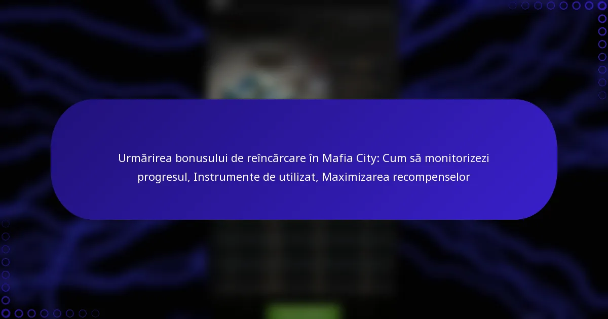 Urmărirea bonusului de reîncărcare în Mafia City: Cum să monitorizezi progresul, Instrumente de utilizat, Maximizarea recompenselor